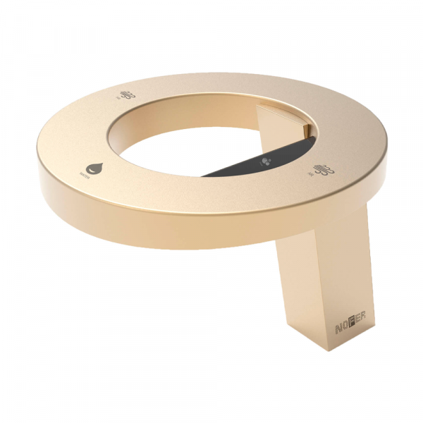 Установка на столешницу с сушилкой для рук, дозатором для мыла и краном для воды. Цвет золотой. Размеры установки 317,5х230х268 мм. Мощность сушки составляет 1200 W, что позволяет высушить руки за 8-15 секунд. Корпус устройства сделан из аллюминия и латуни. Смеситель может регулировать поток воды от 3 до 7 литров в минуту. Конструкция имеет 3 раздельных сенсора для активации воды, подачи мыла и сушилки для рук. Уровень шума 65 ДБ. Аппарат поставляется с НЕРА фильтром в комплекте.
