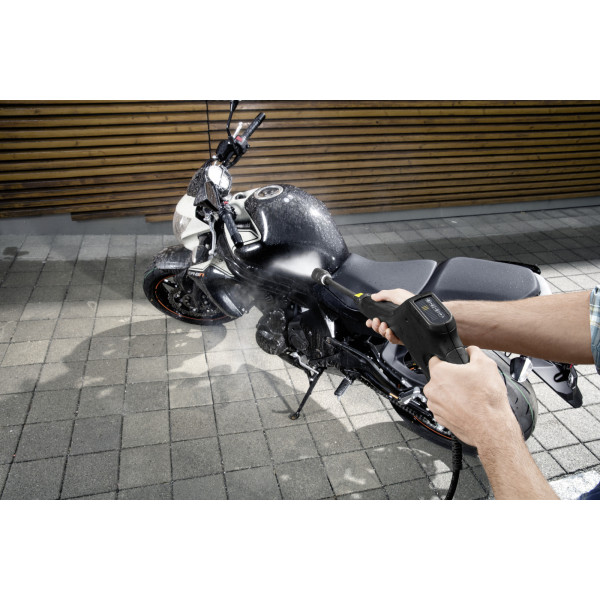 Три режима давления и режим подачи моющего средства обеспечивают оптимальные условий для каждой поверхности. Давление можно регулировать крутя струйную трубку Vario Power, пока не будет показан желаемый уровень. Дисплей на пистолете Full Control Power Gun позволяет легко проверить настройки выбранного режима.
