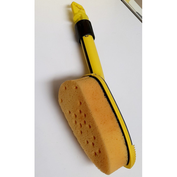 Резиновый скребок обеспечивает удаление стойких загрязнений (например, следов насекомых). Работа облегчается благодаря эргономичной форме ручки. Губка подходит к бытовым аппаратам высокого давления Karcher и может также присоединяться к садовому шлангу (через соответствующий адаптер).