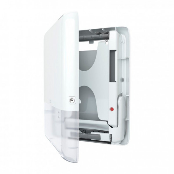 Эргономичный дизайн с обтекаемыми линиями корпуса, полупрозрачное окошко, замок, закрывающийся на ключ или работающий как кнопка. На крепежной панели размещен уровнемер. Внутри диспенсера - отметка максимального уровня, индикатор расхода полотенец и инструкция. Всё это позволяет с легкостью отслеживать расход полотенец и своевременно пополнять их запас.