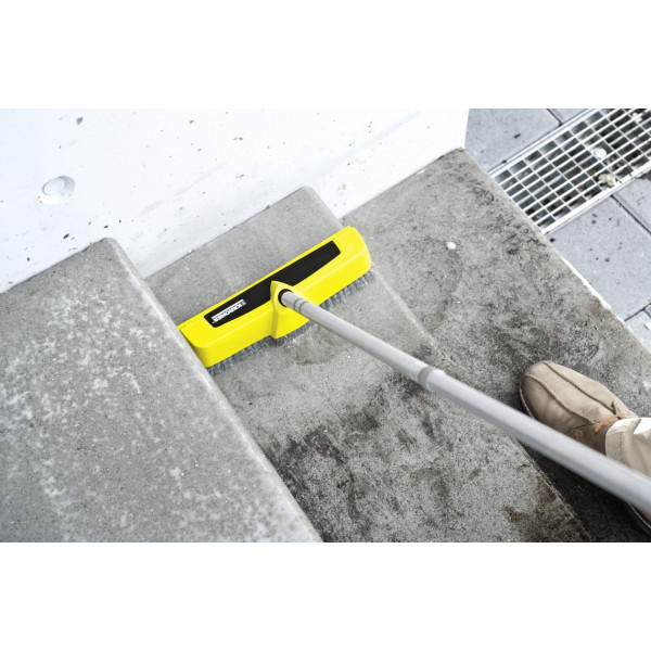 Швабра с 3 интегрированными соплами высокого давления существенно повышает производительность уборки в сравнении с обычной шваброй. Быстро и основательно очищает поверхности даже от стойкой грязи (прекрасно подходит для очистки углов и ступеней, уборки на балконах и в гаражах). Совместима с бытовыми аппаратами высокого давления Kärcher.